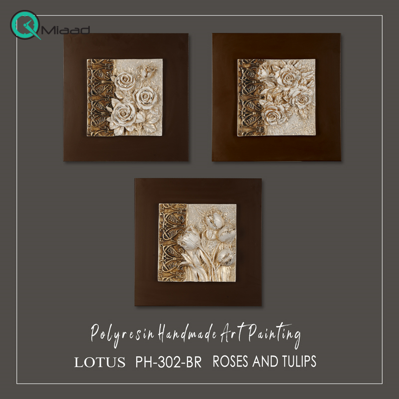 امروز برای شما یک ست بسیار خارق العاده از سری تابلو های تزیینی میعاد تایم را موجود کرده ایم که بیشتر در موردش به شما توضیحات لازمه را ارائه می دهیم. تابلوهای پلی رزین لوتوس در طرح ها و سایز های متنوع ارائه می گردند. سری جدید تابلوهای پلی رزین به شکل تابلو سه تکه ارائه شده اند که سایز هر کدام از تابلوها سایز 40 سانتی متر است.