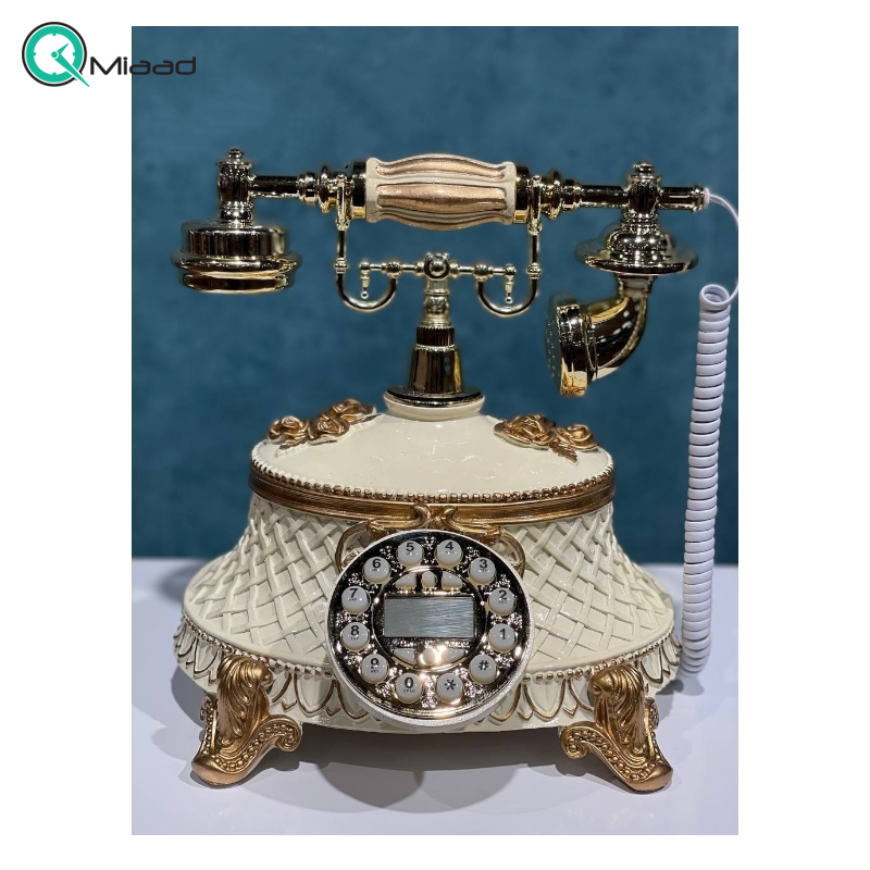تلفن رومیزی سلطنتی میرون مدل 122 رنگ سفید طلایی با توجه به طرح قدیمی که دارد مناسب دکور منزل و یا حتی محیط های کاری می باشد. این تلفن رومیزی دکوری با داشتن کالر آیدی امکان مشاهده و ذخیره شماره ها و حتی تکرار آخرین شماره گرفته شده را برای شما فراهم می کند. بدنه این تلفن کلاسیک از جنس پلی رزین دست ساز می باشد که از زیبایی خاصی برخوردار می باشد و به عنوان یک وسیله دکوری و البته استفاده به عنوان تلفن دوم انتخاب ایده آلی به نظر می رسد.