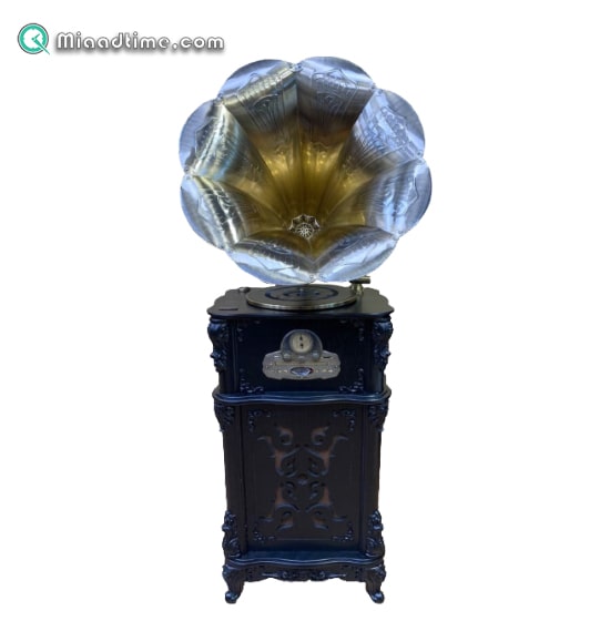 گرام با شیپور کلاسیک رنگ طلایی قابلیت پخش CD-MP3-DVD ورودی درگاه USB قابلیت اتصال از طریق بلوتوث رادیو استریو 2 موج AM/FM | گرامافون با قابلیت پخش صفحه با سه سرعت دور ضبط شده،ورودی درگاه Aux، دارای خروجی های صدا و تصویر، قابلیت پخش صدا به صورت استریو، دارای صفحه LED جهت نمایش عملیات CD، کنترل از راه دور جهت عملیات تنظیم CD-MP3-DVD، دارای ساب ووفر جهت تقویت صدا