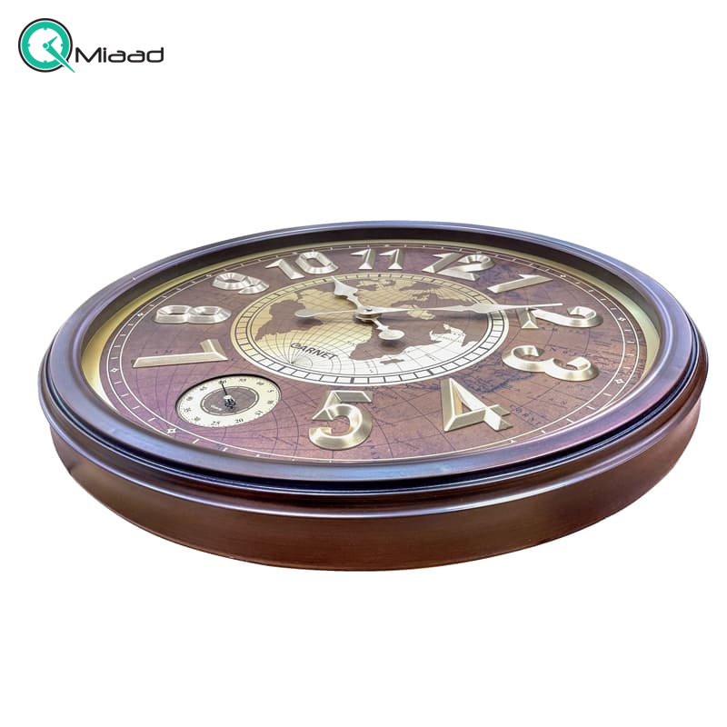 ساعت دیواری شوبرت، ساعت دیواری سایز 60 طرح چوبی فریم پلاستیکی با قیمت اقتصادی، صفحه چوبی ساعت، دارای 2 موتور روانگرد و بدون صدا | مدل 5260 گارنت