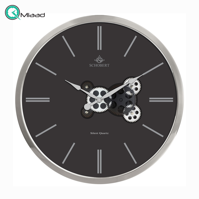 ساعت دیواری فلزی شوبرت چرخ دنده ای مدل 5314QBK، ساعت دیواری مدرن و فلزی با طراحی عالی، سایز 50، دارای موتور ثانیه شمار مستقل ، رنگ نقره ای صفحه مشکی