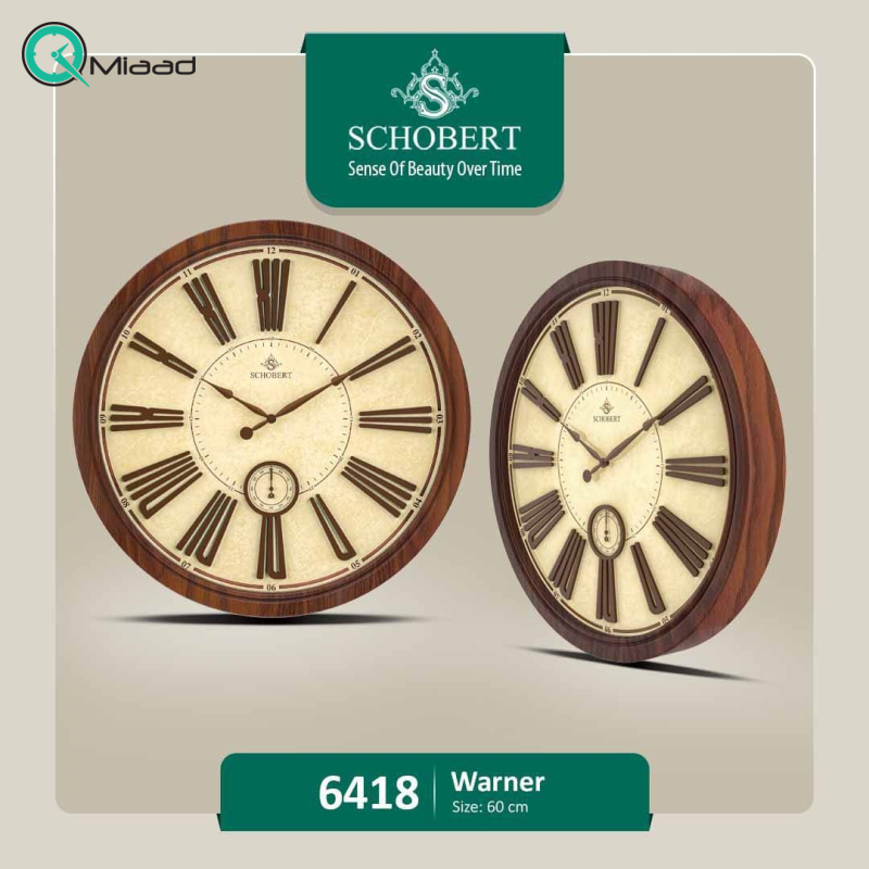 ساعت دیواری چوبی شوبرت 6418 سایز 60 از سری محصولات جدید شوبرت می باشد. یکی از جدیدترین ساعت های برند شوبرت را هم اکنون در قسمت ساعت دیواری سایت میعاد تایم در اختیار شما قرار داده ایم. ساعت های دیواری مدرن به غیر از نشان دادن زمان، اهداف دیگری نیز دارند. ساعت دیواری به عنوان یک عنصر تزئینی اهمیت زیادی دارد که می تواند به زیبایی منزل شما بیافزاید. ساعت های دیواری برند شوبرت که در میعاد تایم موجود شده است به طور قابل توجهی طراحی خانه ها، محل کار و سایر مناطق را بهبود بخشیده است. طیف گسترده‌ای از ساعت‌های دیواری با استفاده از طرح‌هایی ساخته می‌شوند که از کلاسیک تا مدرن و ساده را شامل می‌شود. ما ساعت شوبرت 6418 را از مجموعه مشهور شوبرت به نمایش گذاشته‌ایم که دارای طراحی منحصر به فرد و شیک همراه با جزئیات مرتبط است.