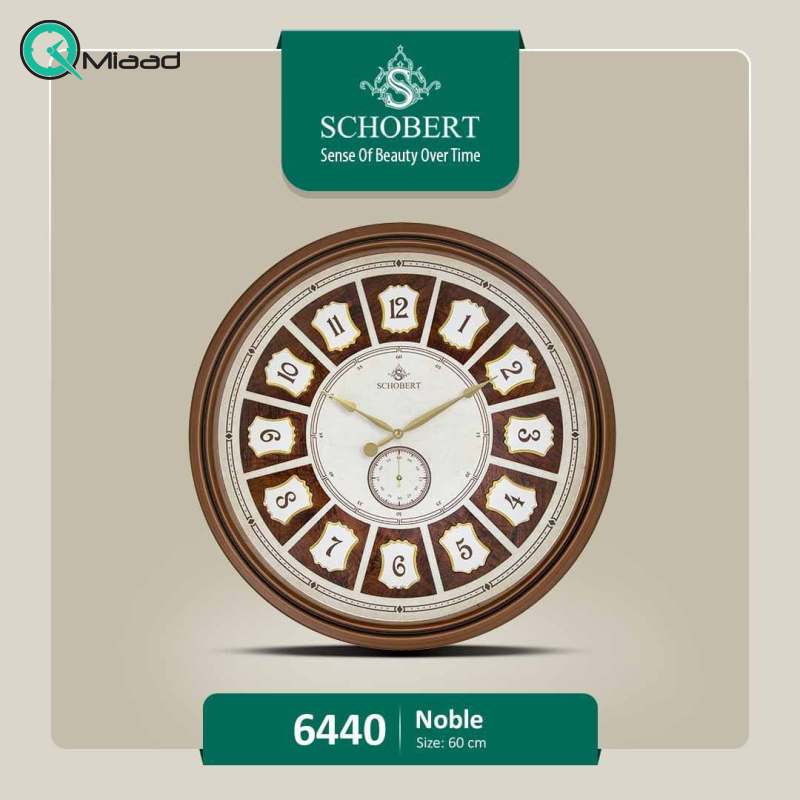 ساعت دیواری شوبرت نوبل مدل 6440 یکی از محصولات ساعت دیواری وب‌سایت میعاد تایم می‌باشد که امروز برای شما موجود کرده‌ایم و در ادامه توضیحات این محصول را ارائه می‌دهیم. ساعت های شوبرت حاصل سال ها تجربه گروهی از زبده ترین کارشناسان صنعت ساعت می باشد. آنها با هدف ترکیب سه ویژگی اساسی زیبایی، دوام و اصالت طراحی شده اند. تولید ساعت های بسیار کاربردی و ظریف همچنان ادامه دارد و به لطف نوآوری طراحان، آنها به محصولی عالی تبدیل شده اند. با توجه به بسته بندی مناسب و خدمات پس از فروش نسبت به برندهای بزرگ، مشتریان چه از بازارهای داخلی و چه بین المللی حس اطمینان خود را ابراز کرده اند و مخاطبان با این برند قوی در صنعت ساعت آشنا شده اند. با در دست داشتن این توضیحات به سراغ ساعت محبوب این برند یعنی ساعت دیواری چوبی شوبرت نوبل 6440 می رویم و نکات بیشتری ارائه می دهیم.