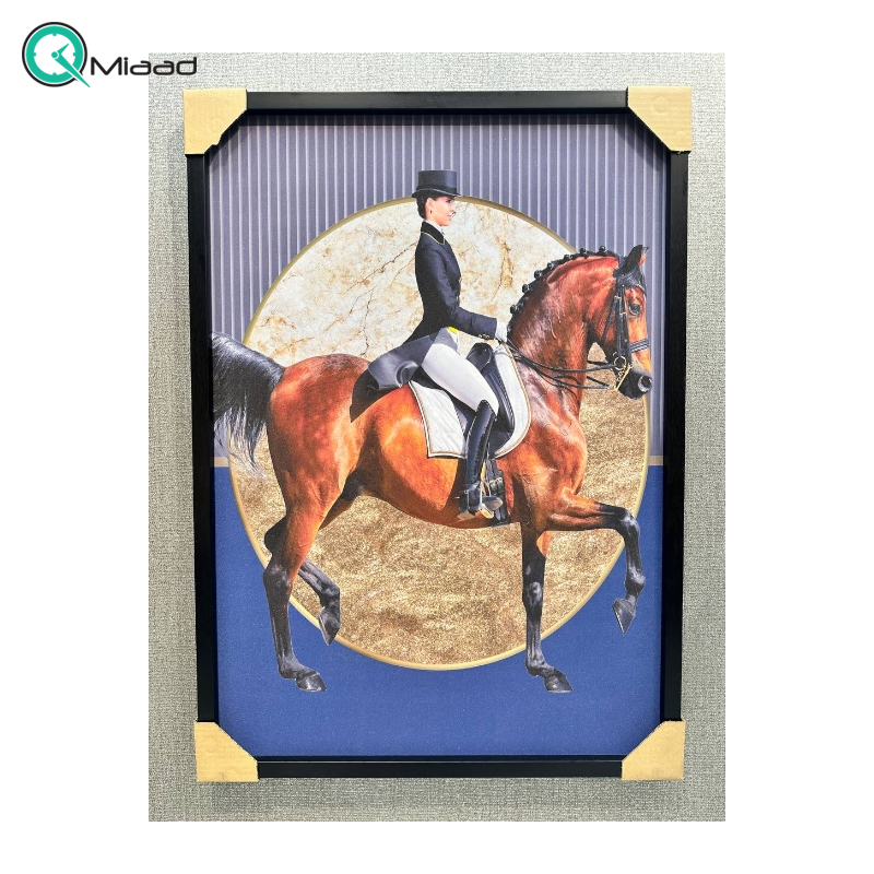 امروز برای شما یک محصول بسیار خارق العاده از سری تابلو های تزیینی میعاد تایم را موجود کرده ایم که در مورد این محصول اطلاعات بهتری را در ادامه به شما توضیح خواهیم داد. در این قسمت تابلو شاینینگ جدیدی را برای شما موجود کرده ایم. این نقاشی هنری از نظر بصری جذاب، یک الگوی منحصر به فرد از یک دختر اسب سوار را به نمایش میگذارد.