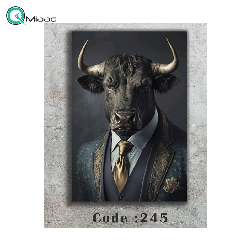 امروز برای شما یک محصول بسیار خارق العاده از سری تابلو های تزیینی میعاد تایم را موجود کرده ایم که در مورد این محصول اطلاعات بهتری را در ادامه به شما توضیح خواهیم داد. در این قسمت تابلو شاینینگ جدیدی با عنوان و مدل تابلو کد 245 با طرح بوفالو با لباس رسمی را در طیف محصولات جدیدترین تابلو برای پذیرایی برای شما موجود کرده ایم.