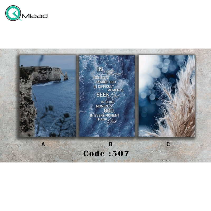 تابلو سه تکه مدل 507 با طرح نقل قول و صخره و دریا محصول امروز میعاد تایم می باشد که برای شما در بخش تابلو موجود کرده ایم. تابلو دکوراتیو دیوارهای خالی را پر می کنند و به هر اتاقی جذابیت می بخشند. آنها دلیل اصلی دکوراسیون دیوار هستند. با مدلهای مختلف موجود، ایجاد مجموعهای از آنها و انتخاب مدل مورد علاقهتان آسان است.