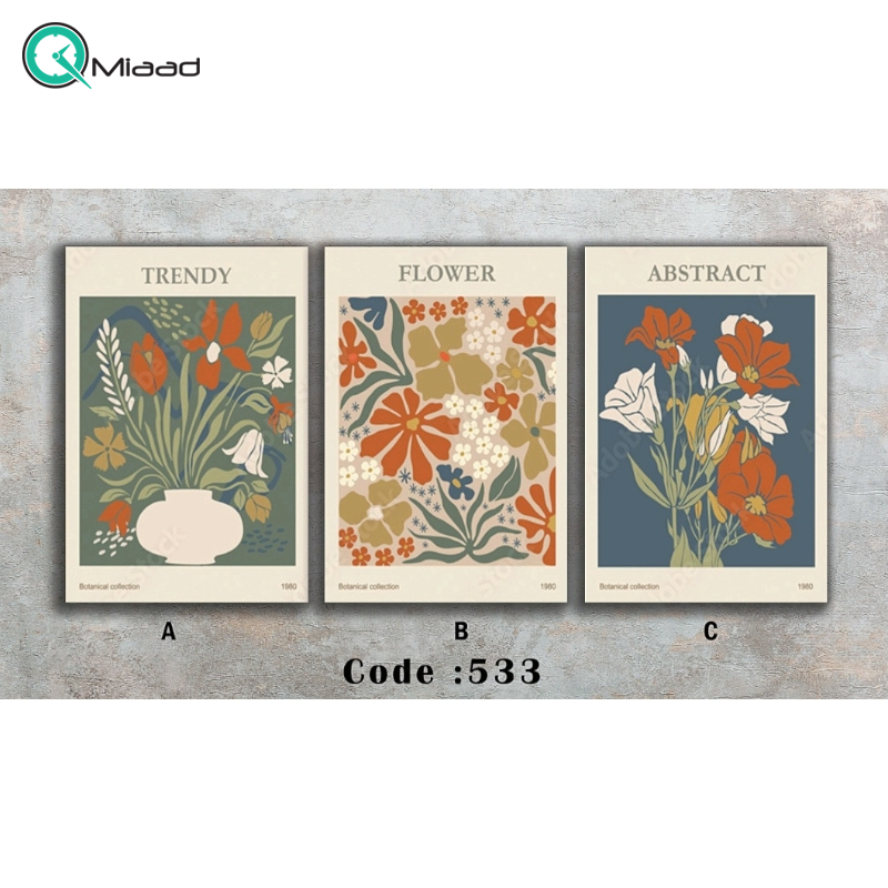 تابلو سه تکه مدل 533 با طرح گل های رنگارنگ محصول امروز میعاد تایم می باشد که برای شما در بخش تابلو موجود کرده ایم. تابلو دکوراتیو دیوارهای خالی را پر می کنند و به هر اتاقی جذابیت می بخشند. آنها دلیل اصلی دکوراسیون دیوار هستند. با مدلهای مختلف موجود، ایجاد مجموعهای از آنها و انتخاب مدل مورد علاقهتان آسان است.