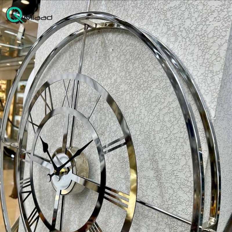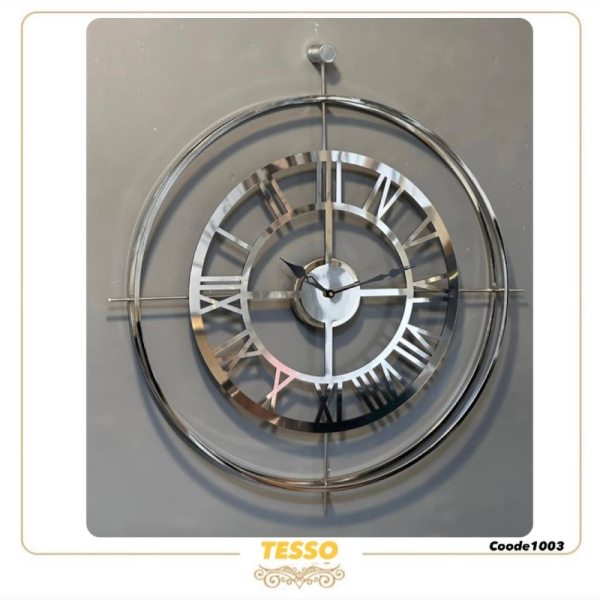 ساعت دیواری تسو مدل 1003، ساعت دیواری مدرن و ساده فلزی قطر 60 سانت با موتور آرامگرد، رنگ نقره ای با آبکاری فورتیک