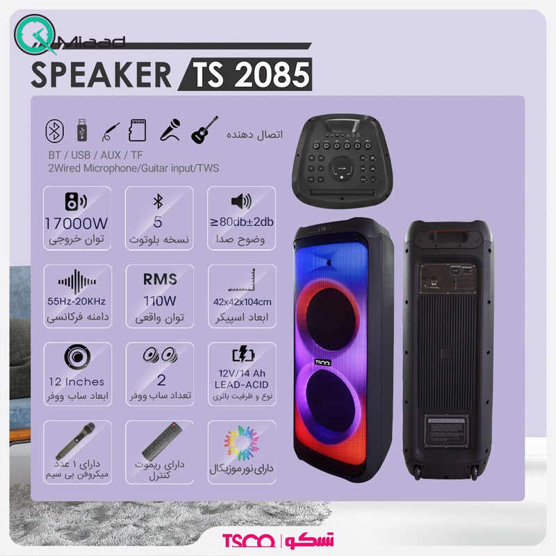 اسپیکر بلوتوثی فوق العاده مدل TS 2085 یکی از محصولات جدید موجود شده فروشگاه اینترنتی میعاد تایم می باشد. اسپیکر بلوتوث وسیله ای استثنایی برای درک موسیقی و صدا هستند. در میان طیف وسیعی از ابزارهای الکترونیکی، بلندگوها به عنوان ابزار ضروری عمل می کنند. آنها تجربه شنیداری را در قلمرو دیجیتال افزایش می دهند و آنها را به یک دارایی ارزشمند تبدیل می کنند. علاوه بر این، کیفیت صدای استثنایی این بلندگوها به سادگی غیرقابل انکار است.