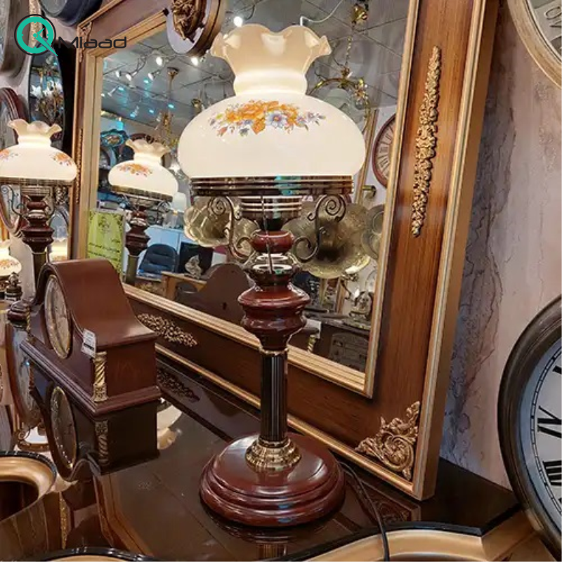 جنس بدنه از متریال چوب و فلز با کیفیت، حباب شیشه ای سفید رنگ، ساخته شده از چوب و فلز
