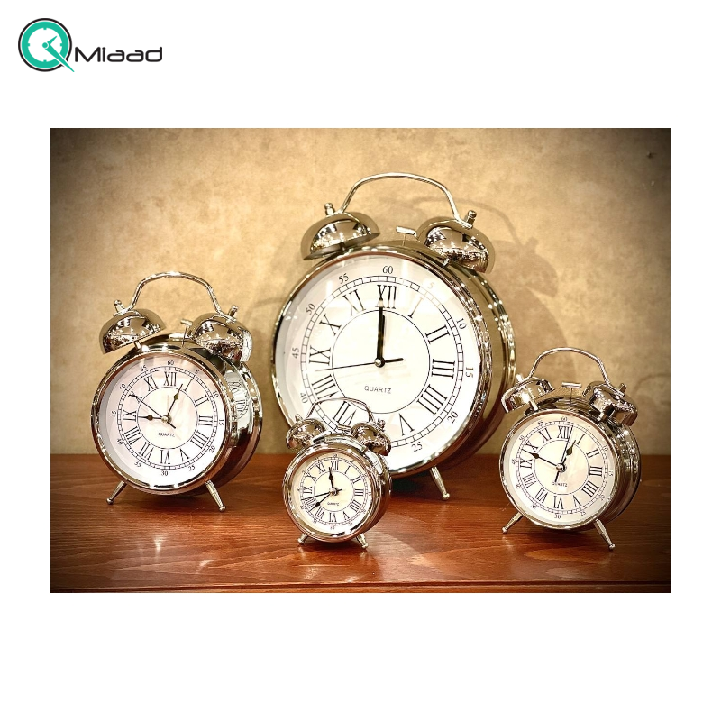 یکی از جذابترین و منحصر به فردترین ساعت های رومیزی، این محصول است که در این قسمت قصد معرفی اش را خواهیم داشت. آبکاری فلزی ساعت به بهترین شکل ممکن سطح ساعت را پوشش داده شده است و ظاهری شفاف و صیقلی متمایز به آن بخشیده است. این ساعت بر روی انواع میز، کنسول، بوفه، ویترین، میز اداری و ... قابل استفاده خواهد بود. لازم به ذکر است ساعت دارای موتور تایوانی است. این ساعت، فقط یک ساعت نیست و طرح و نقش بسیار لوکس و ویژه این محصول، هر میزی را زیبا میکند و به شدت در دکوراسیون زیبایی می بخشد. اگر محیط اداری می باشد این ساعت تکمیل کننده ست اداری شما است و اگر منزل مسکونی است هر سطحی میتواند پذیرایی این ساعت خاص باشد. همچنین این مدل در 4 سایز 23، 15، 12 و 9 سانتی متر برای شما موجود شده است.