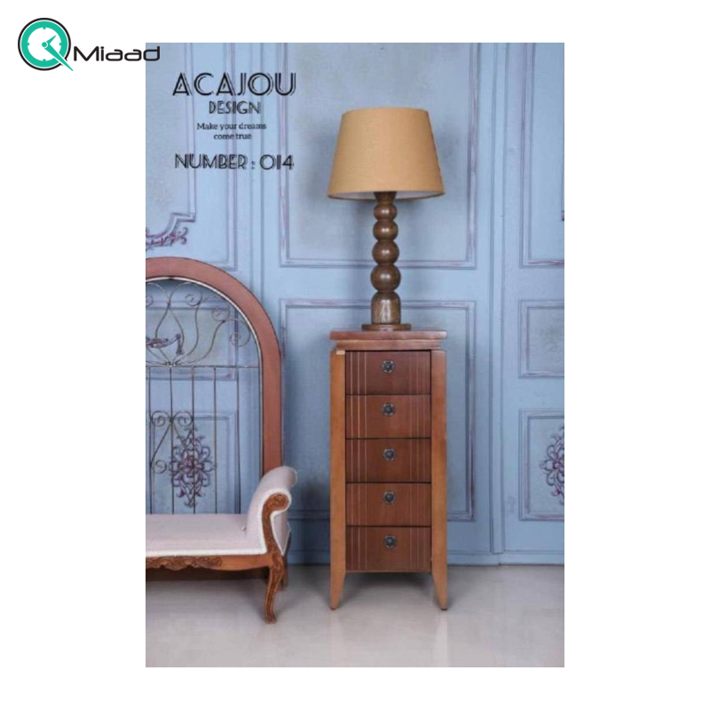 میز آباژور چوبی آکاژو کد 14، میز کنار مبلی با طراحی ساده و کلاسیک، دارای پنج کشو و یک فضا برای نگه داری وسایل دکوری