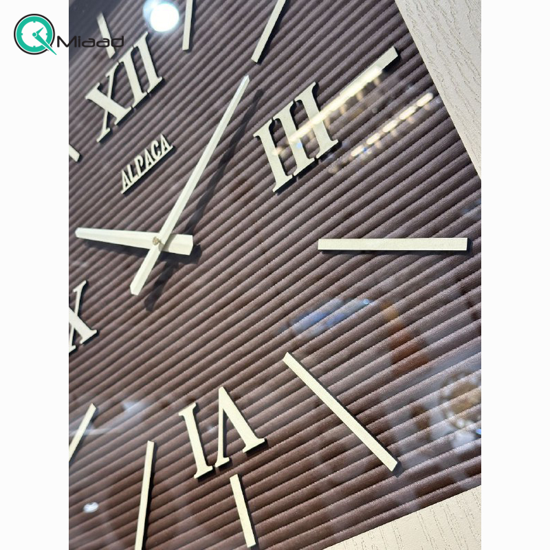 ساعت دیواری چوبی آلپاکا Alpaca کد GL72، ساعت دیواری رنگ کرم مربع صفحه چرم سایز 60 و موتور آرامگرد، ساعت دیواری با صفحه خاص و زیبا
