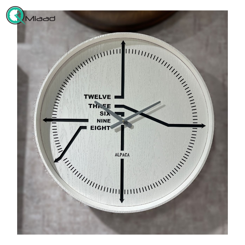 متریال ام دی اف ساعت، بهترین کیفیت موتور بدون صدا، بدون شیشه، طراحی ساده و مینیمال، رنگ سفید
