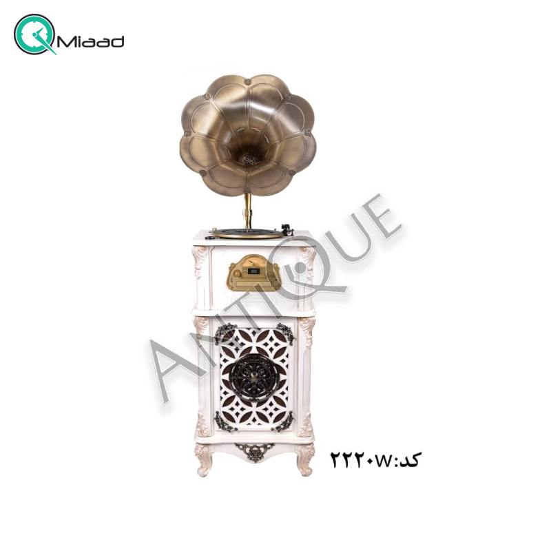 گرامافون ایستاده آنتیک 5 کاره مدل 2220 رنگ سفید یکی از گرامافون های جدید میعاد تایم می باشد که امروز برای شما موجود شده است. گرامافون یک دستگاه ضبط و پخش صدای آنالوگ است. صنعت موسیقی به لطف این دستگاه دچار انقلاب قابل توجهی شد. آخرین نسخه های این دستگاه پیچیده تر و موثرتر از نسخه های قبلی هستند. این یک دستگاه فوق العاده است که از نظر زیبایی شناسی و نوستالژیک نیز جذاب است. دو نوع گرامافون وجود دارد: ایستاده و رومیزی. توماس ادیسون با خلق این گجت اعتبار و شهرت دارد. امروز هم برای شما محصول جدید از برند آنتیک را موجود و در ادامه بیشتر در مورد این گرامافون توضیحات لازمه را ارائه می دهیم.