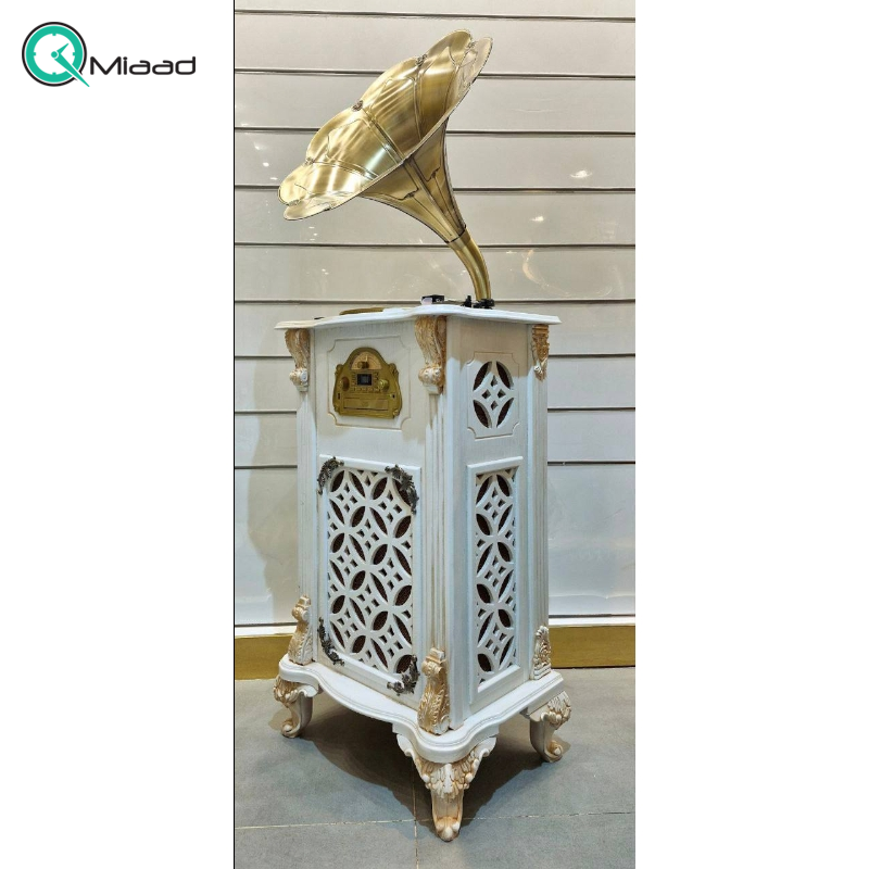 گرامافون ایستاده آنتیک پنج کاره 2268 رنگ سفید یکی از گرامافون های فوق العاده وبسایت میعاد تایم می باشد که در بخش گرامافون های این سایت موجود شده است. یکی از خاطره انگیز ترین، نوستالژیک ترین و از نظر بصری خیره کننده ترین اشیاء گرامافون است که بسیار دوست داشتنی و جذاب است. شنونده می تواند به لطف این وسیله کلاسیک به فایل صوتی مد نظر خود گوش دهد. در خانههای خاص، گرامافون هنوز به صورت دورهای استفاده میشود، البته به ندرت، زیرا قبلاً اغلب استفاده میشد. گرامافون ها زمانی فقط برای پخش صدا، موسیقی و گاهی اوقات رادیو استفاده می شدند، اما با توجه به ویژگی های امروزی موجود در این سری از محصولات، اکنون همتراز با سیستم های پخش حرفه ای هستند یا حتی از آنها پیشی می گیرند. یکی از مزایای منحصر به فرد این طیف محصولات لوکس، حفظ ظاهر نوستالژیک و قدیمی گرامافون است.