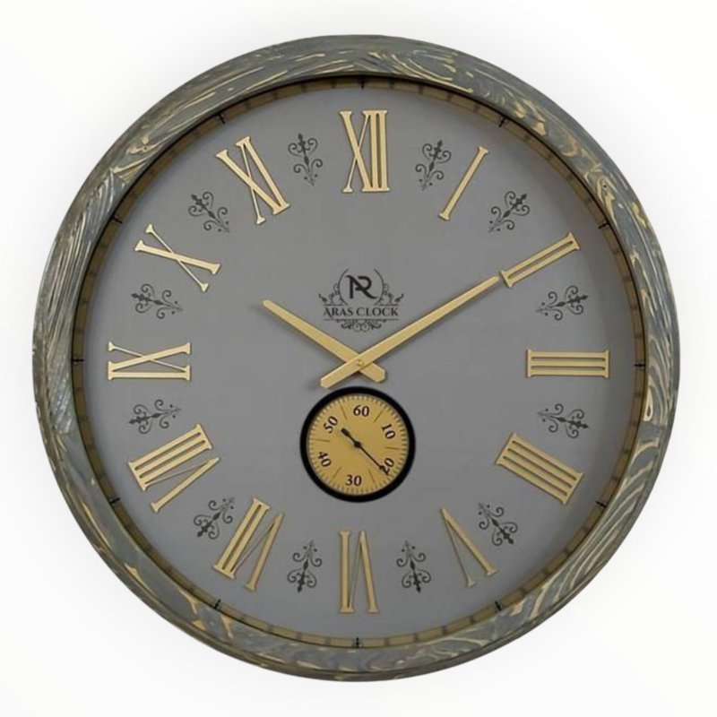 ساعت دیواری مدل 7777 از برند خوشنام ارس، ترکیبی بینظیر از هنر نجاری و تکنولوژی مدرن است. این ساعت با قطر 70 سانتیمتر طراحی شده که آن را به گزینهای ایدهآل برای دیوارهای بزرگ در سالنهای پذیرایی، لابیها و محیطهای اداری تبدیل میکند. رنگ بدنه طوسی سندبلاست همراه با پتینهکاری طلایی، جلوهای لوکس و متمایز به دکوراسیون شما میبخشد.