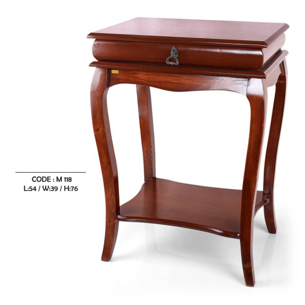 میز تلفن چوبی مدل 118 محصول جدید میعاد تایم می باشد که امروز برای شما موجود کردهایم. میزهای تزیینی می توانند ظرافت را به هر اتاقی اضافه کنند. می توانید روی سطح این میز وسایل تزیینی مختلف قرار دهید. همچنین می توانید تلفن و حتی گرامافون رومیزی را روی سطح میز قرار دهید. میز تلفن یکی دیگر از مواردی است که باید به آن توجه کنید زیرا می تواند فضای بیشتری را برای قرار دادن وسایل تزیینی روی سطح میز و همچنین گوشی در اختیار شما قرار دهد.