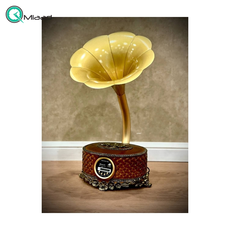پخش کننده خانگی طرح گرام مدل 004، بلوتوث پلیر طرح گرامافون رومیزی با طراحی بی نظیر و ظریف، رنگ قهوه ای