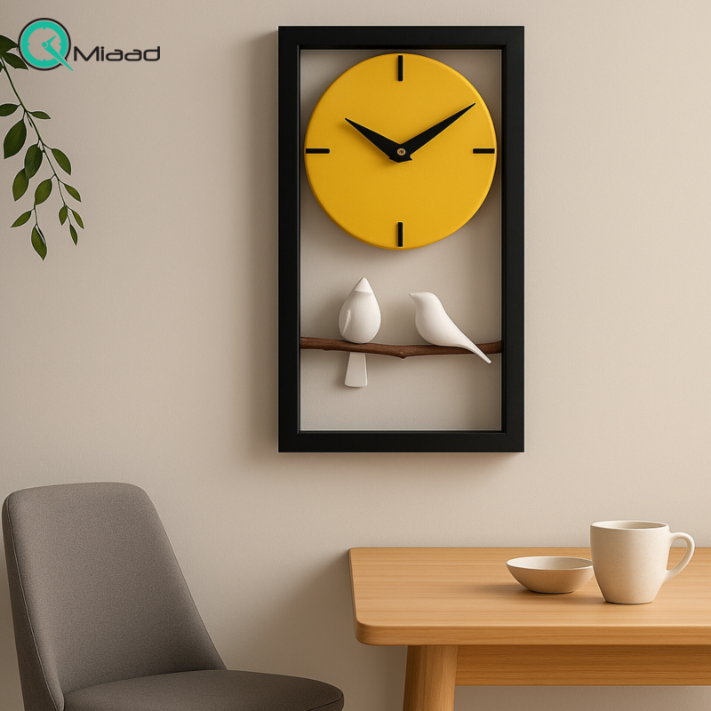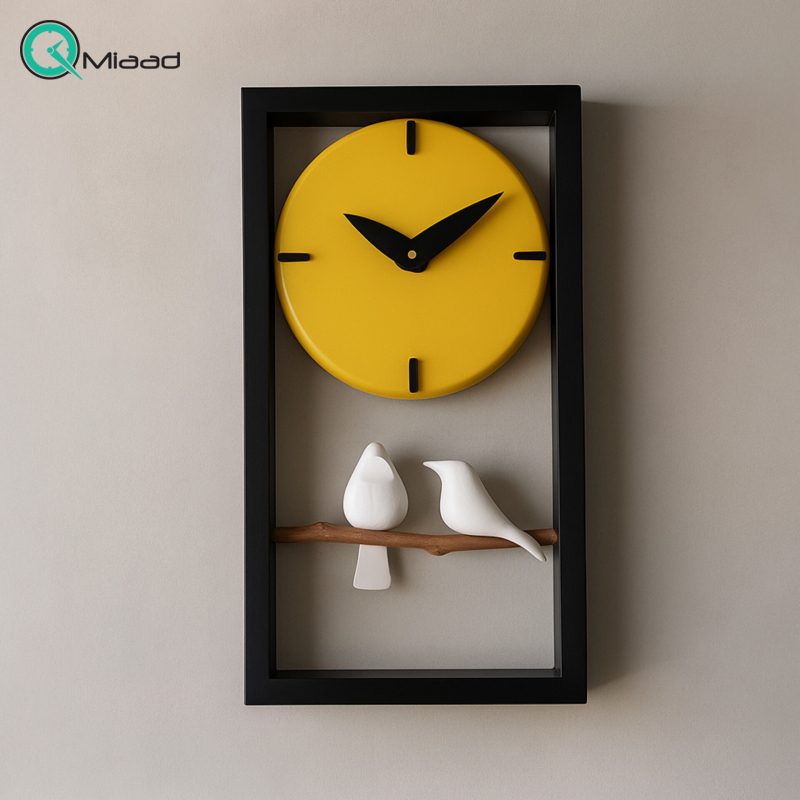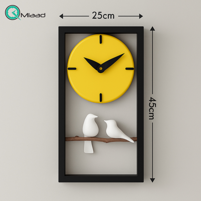 ساعت دیواری چوبی دست ساز مدل 108 کاملا دست ساز و تمام اجزای آن حتی پرنده ها، ساخته شده از چوب طبیعی باکیفیت است. موتور تایوانی که برای این مدل ساعت استفاده شده، آرام گرد و بدون صداست و هیچ گونه صدای تیک تاکی ندارد و براحتی در اتاق خواب نیز میتوانید آن را نصب کنید. ترکیب رنگی صفحه با اعداد و عقربه باعث شده تا ساعت از فاصله دور هم خوانایی بالایی داشته باشد و زیبایی ساعت را نیز دوچندان کند.