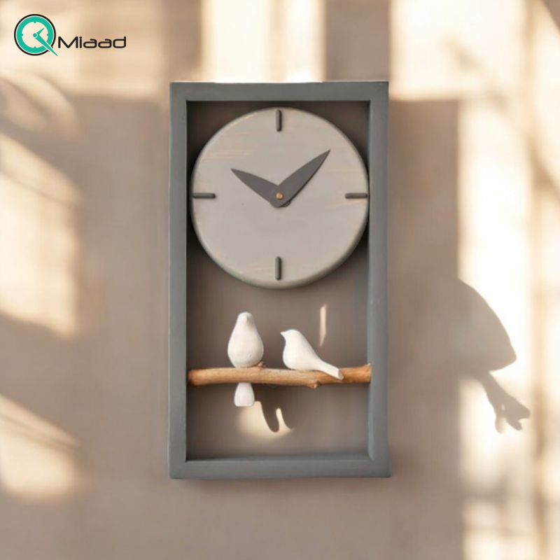ساعت دیواری چوبی دست ساز مدل 111 کاملا دست ساز و تمام اجزای آن حتی پرنده ها، ساخته شده از چوب طبیعی باکیفیت است. موتور تایوانی که برای این مدل ساعت استفاده شده، آرام گرد و بدون صداست و هیچ گونه صدای تیک تاکی ندارد و براحتی در اتاق خواب نیز میتوانید آن را نصب کنید. ترکیب رنگی صفحه با اعداد و عقربه باعث شده تا ساعت از فاصله دور هم خوانایی بالایی داشته باشد و زیبایی ساعت را نیز دوچندان کند.