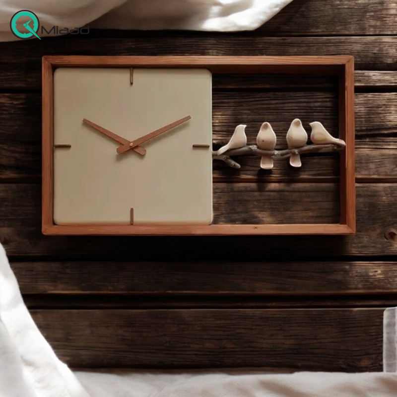 ساعت دیواری چوبی دست ساز مدل 128 کاملا دست ساز و تمام اجزای آن حتی پرنده ها، ساخته شده از چوب طبیعی باکیفیت است. موتور تایوانی که برای این مدل ساعت استفاده شده، آرام گرد و بدون صداست و هیچ گونه صدای تیک تاکی ندارد و براحتی در اتاق خواب نیز میتوانید آن را نصب کنید. ترکیب رنگی صفحه با اعداد و عقربه باعث شده تا ساعت از فاصله دور هم خوانایی بالایی داشته باشد و زیبایی ساعت را نیز دوچندان کند.