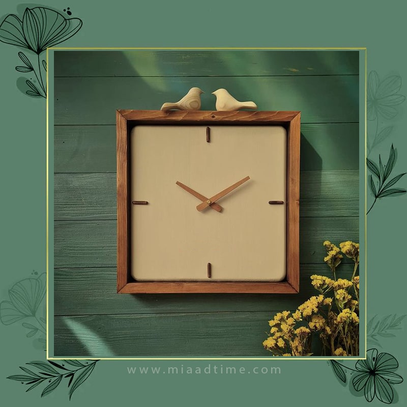 ساعت دیواری چوبی دست ساز مربع سایز 34 کاملا دست ساز و تمام اجزای آن حتی پرنده ها، ساخته شده از چوب طبیعی باکیفیت است. موتور تایوانی که برای این مدل ساعت استفاده شده، آرام گرد و بدون صداست و هیچ گونه صدای تیک تاکی ندارد و براحتی در اتاق خواب نیز میتوانید آن را نصب کنید. ترکیب رنگی صفحه با اعداد و عقربه باعث شده تا ساعت از فاصله دور هم خوانایی بالایی داشته باشد و زیبایی ساعت را نیز دوچندان کند.