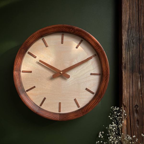 دست ساز ساخت شده با چوب طبیعی، تمام اجزا حتی عقربه ها از جنس چوب با کیفیت ساخت بالا، طراحی کاملا خاص و منحصربفرد، دارای موتور آرام گرد و بدون صدای تایوانی