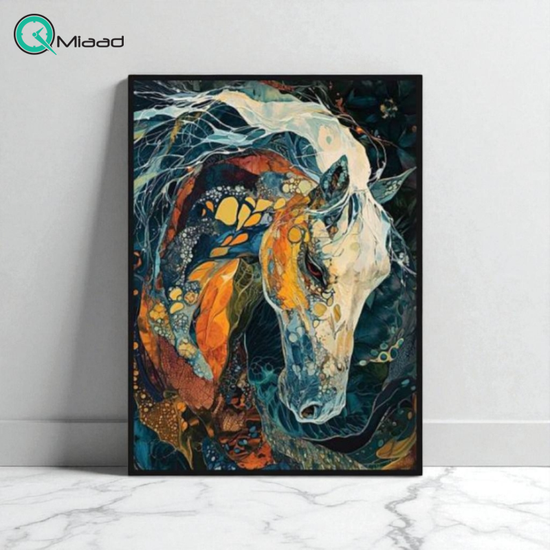 تابلو با فریم پی وی سی با کیفیت ساخت بالا، زیبایی بصری چشمگیر، طرح های بی نظیر روی تابلو، طرح انتزاعی یک اسب