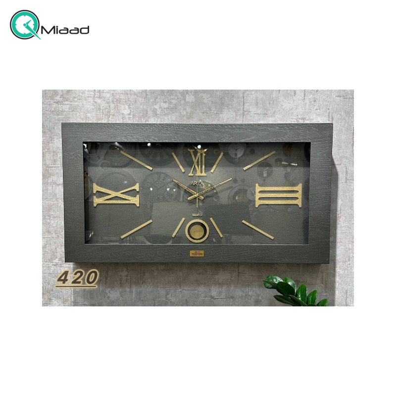 ساعت دیواری آرتا Arta کد 445 رنگ طوسی یک ساعت دیواری چهارگوش مستطیلی شکل با متریال چوب می باشد. محصول این قسمت که برای شما در دسترس قرار گرفته است، دارای سایز 84x40 می‌باشد. علاوه بر این، دارای یک موتور بی‌صدا است و با صفحه و حداقل جزئیات طراحی شده است و ظاهر مینیمال هم به زیبایی این ساعت اضافه کرده است. همچنین این ساعت مجهز به یک پاندول می باشد. شما می توانید در دو مدل اعداد رومی و اعداد لاتین، این محصول را سفارش دهید.