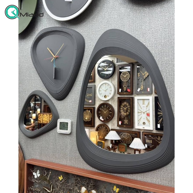 ست آینه و ساعت دیواری مدل راچین رنگ طوسی تیره