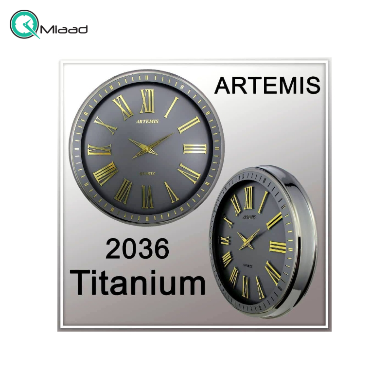 ساعت دیواری فلزی آرتمیس مدل 2036 تیتانیوم طلایی هم یکی دیگر از ساعت دیواری های فروشگاه میعاد تایمی می باشد. در ادامه توضیحات بیشتری در مورد ساعت دیواری فلزی آرتمیس 2036 ارائه می دهیم.
