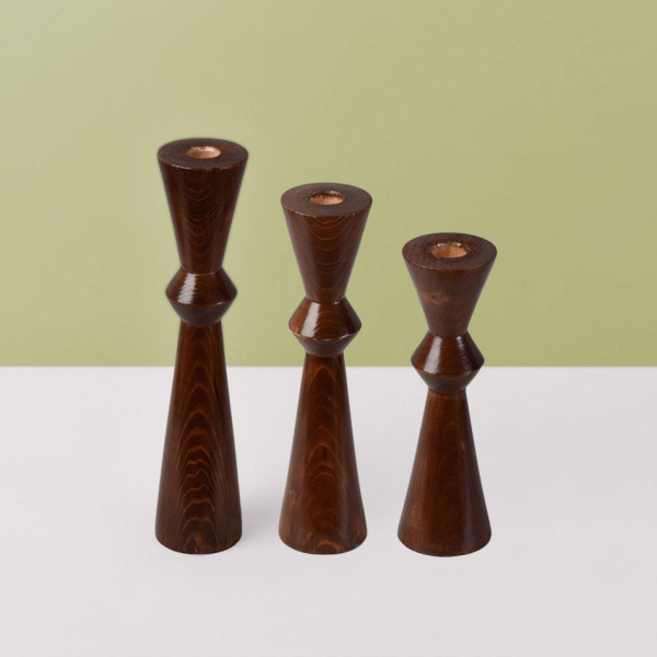 دارای سه سایز مختلف، متریال چوب طبیعی، استفاده تزیینی و کاربردی به عنوان شمعدان