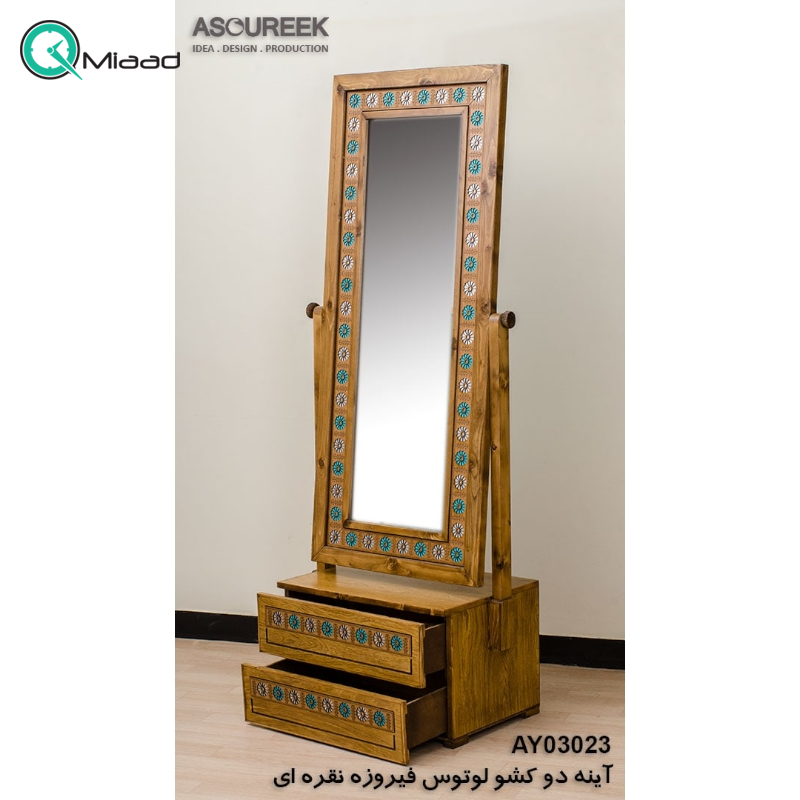 آینه دو کشو لوتوس فیروزه نقره ای مدل AY03023 یکی از محصولات جدید میعاد تایم می باشد که زیر دسته محصولات آسوریک می باشد.