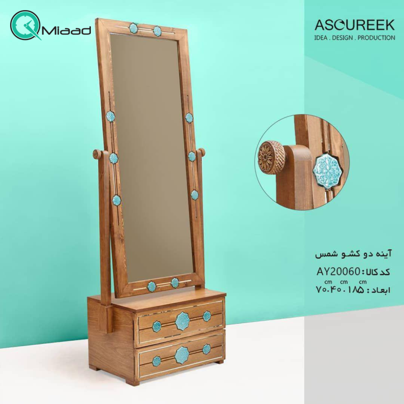 آینه ایستاده دو کشو مدل شمس کد AY20060 یکی از محصولات جدید میعاد تایم می باشد که زیر دسته محصولات آسوریک می باشد.