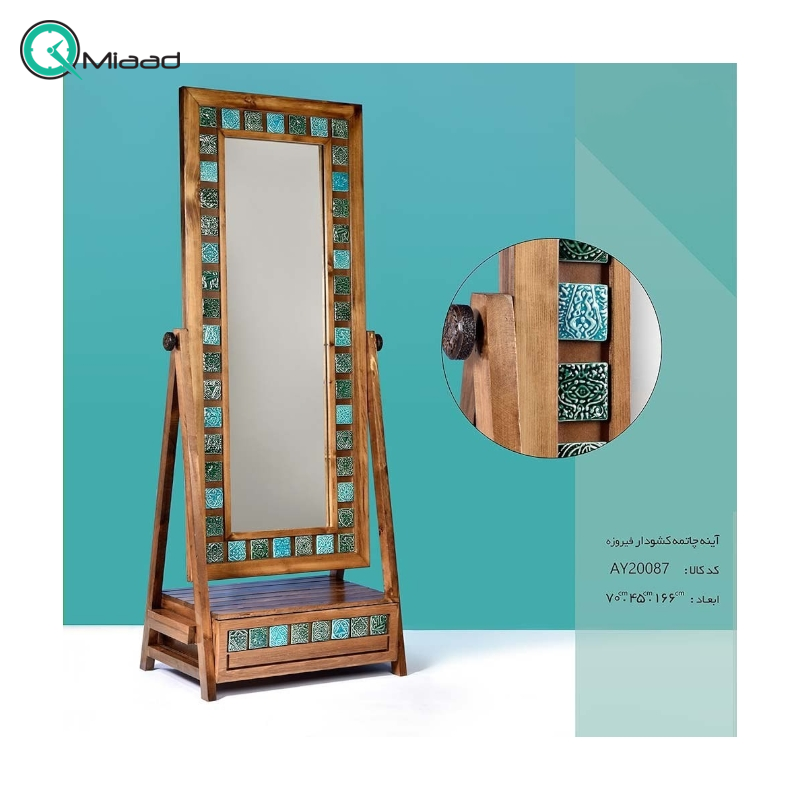 آینه ایستاده کشو دار مدل فیروزه کد AY20087 یکی از محصولات جدید میعاد تایم می باشد که زیر دسته محصولات آسوریک می باشد.
