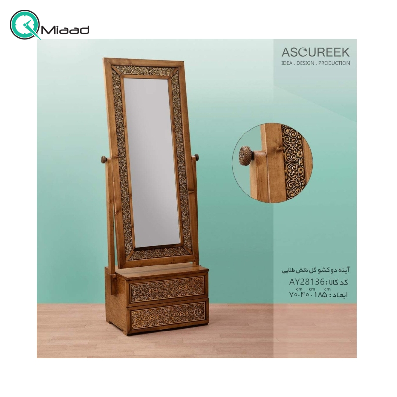 آینه دو کشو گلنقش طلایی مدل AY28136 یکی از محصولات جدید میعاد تایم می باشد که زیر دسته محصولات آسوریک می باشد.