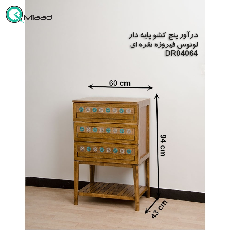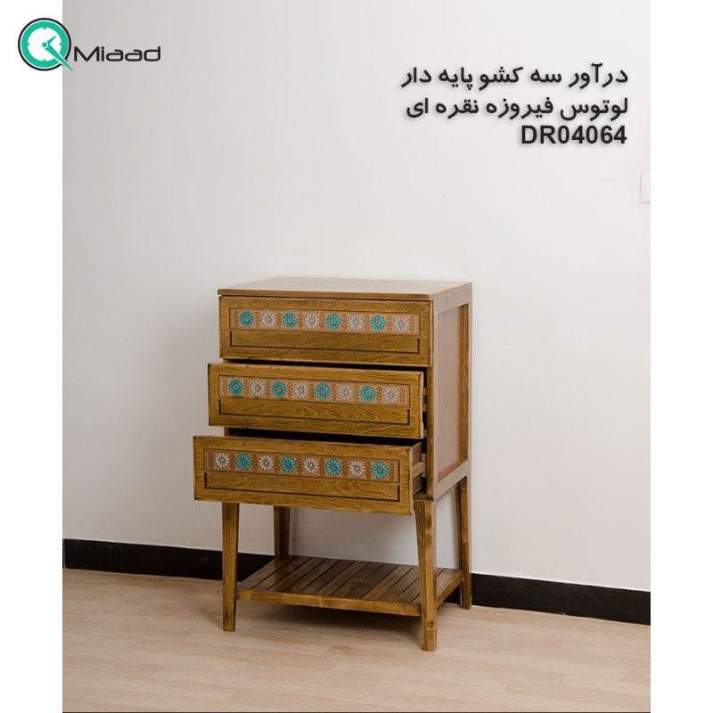 دراور سه کشو پایه دار مدل چلیپا کد DR04064 یک میز زینتی است که می تواند مکانی برای نگهداری وسایل تزیینی در اختیار شما قرار دهد. دراور به شما فضایی برای نگه داری وسایل و البسه و سایر موارد را در اختیار شما قرار می دهد.
