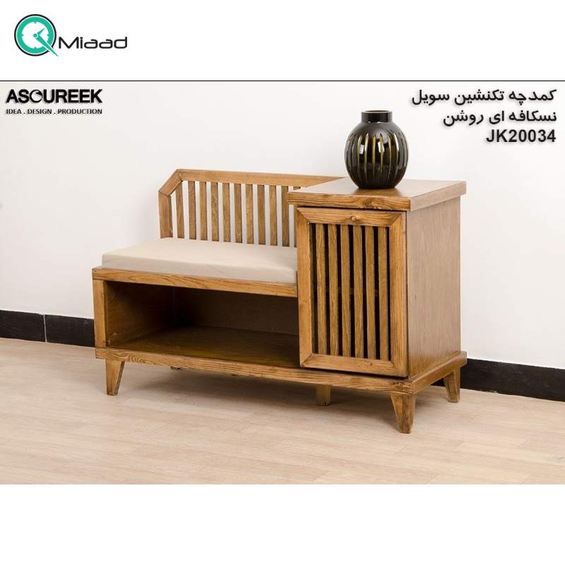 کمدچه تک نشین چوبی سویل مدل JK20034 از سری محصولات زیبا و دست ساز برند آسوریک می باشد. فضای ورودی و راهروها همیشه به عنوان اولین نقاط در دسترس و اولین نقاط دکوراسیون دیده می شوند؛ این فضا برای متخصصین دکوراسیون و چیدمان منزل اهمیت داشته و در اکثر اوقات سعی می شود که به بهترین نحو ممکن این تغییر دکور انجام شود.
