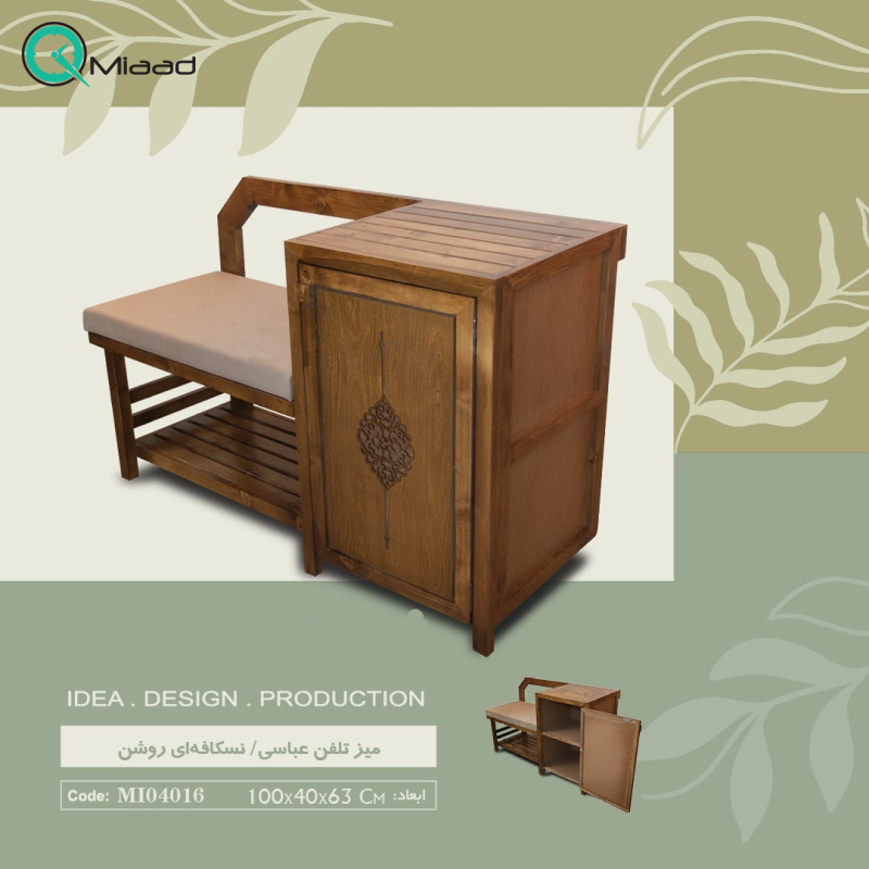 میز تلفن مدل عباسی کد MI04016 محصول جدید میعاد تایم می باشد که امروز برای شما موجود کردهایم. میزهای تزیینی می توانند ظرافت را به هر اتاقی اضافه کنند. می توانید روی سطح این میز وسایل تزیینی مختلف قرار دهید. همچنین می توانید تلفن و حتی گرامافون رومیزی را روی سطح میز قرار دهید. میز تلفن یکی دیگر از مواردی است که باید به آن توجه کنید زیرا می تواند فضای بیشتری را برای قرار دادن وسایل تزیینی روی سطح میز و همچنین گوشی در اختیار شما قرار دهد.