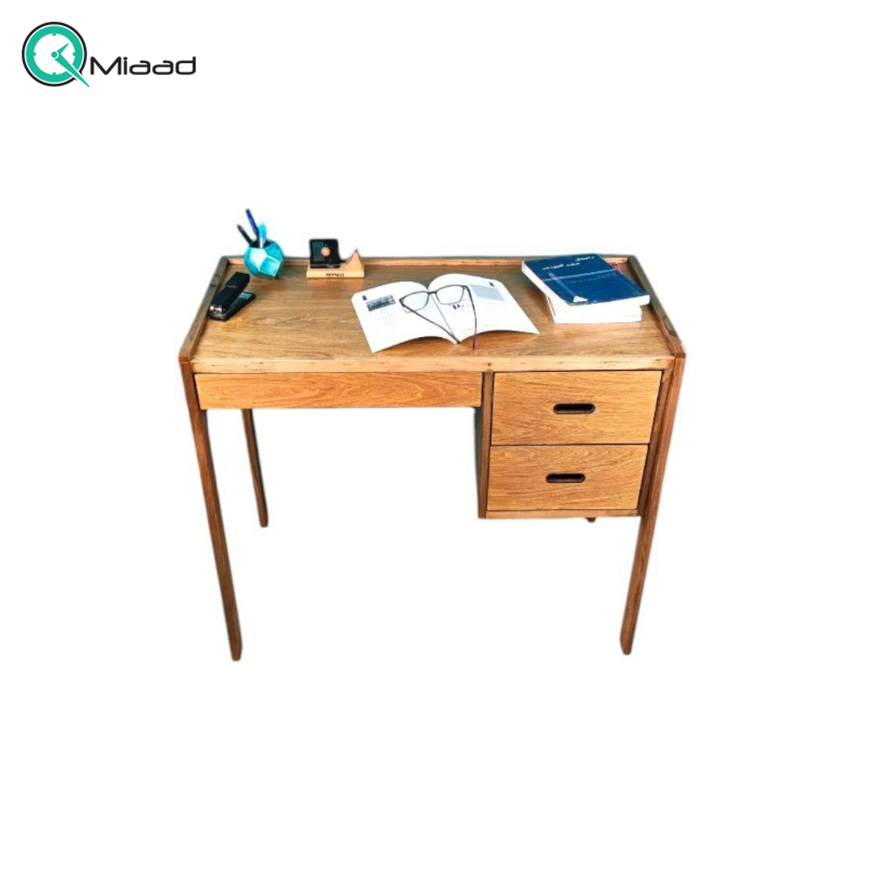 طراحی مدرن و مینیمال، دارای دو کشوی جادار، رنگبندی جذاب، ساخته شده از چوب، مناسب برای اتاق کار، مطالعه یا اتاق نوجوان، اشغال فضای کم، سطح صاف و مناسب برای نوشتن و کار با لپتاپ.