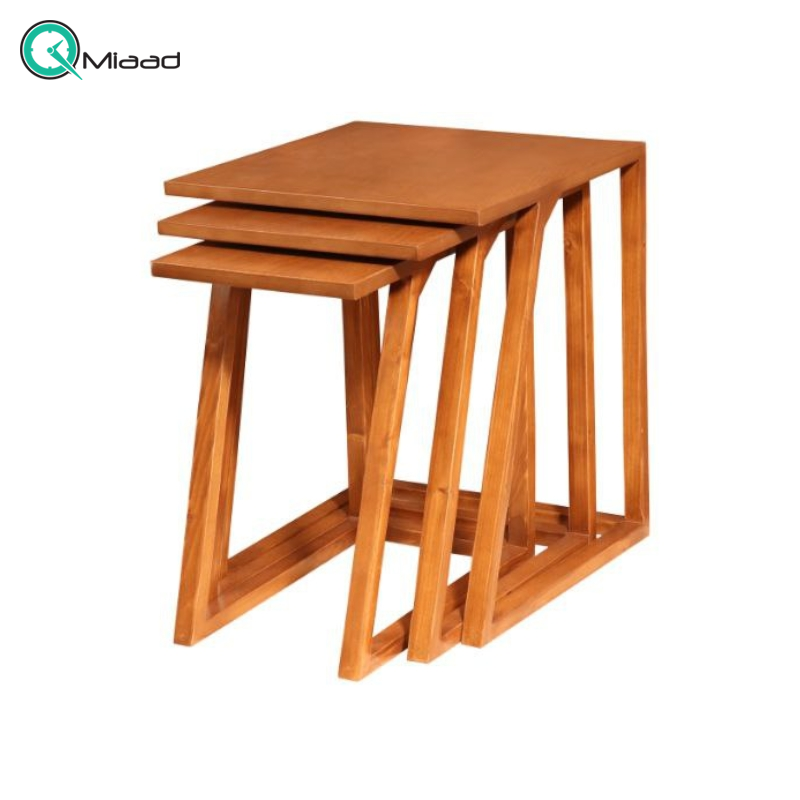 میز عسلی چوبی سه تکه طرح دار کد M104074 که به صورت سه تکه و پلکانی طراحی شده است. بر این اساس این سه میز به راحتی در زیر هم جای داده می شود و فضا بسیار می را در بر می گیرد. این میز با پایه های چوبی مقاوم زیبایی بی نظیری به دکوراسیون شما اضافه می کند و در مهمانی ها و مجالس می توانید از این میز بی نظیر برای سرو وسایل پذیرایی مختلف استفاده کنید. میز عسلی یک وسیله کاربردی و تزیینی برای منزل است. میز عسلی وسیله ای است که با کمترین هزینه ایده های زیادی برای تزیین می دهد. میز عسلی را می توان در جلوی مبل قرار داد تا فضا را مرتب کند.