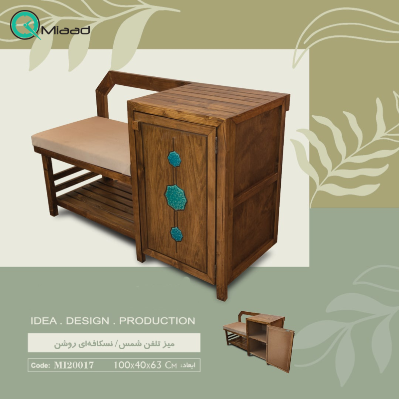 میز تلفن مدل شمس کد MI20017 محصول جدید میعاد تایم می باشد که امروز برای شما موجود کردهایم. میزهای تزیینی می توانند ظرافت را به هر اتاقی اضافه کنند. می توانید روی سطح این میز وسایل تزیینی مختلف قرار دهید. همچنین می توانید تلفن و حتی گرامافون رومیزی را روی سطح میز قرار دهید. میز تلفن یکی دیگر از مواردی است که باید به آن توجه کنید زیرا می تواند فضای بیشتری را برای قرار دادن وسایل تزیینی روی سطح میز و همچنین گوشی در اختیار شما قرار دهد.