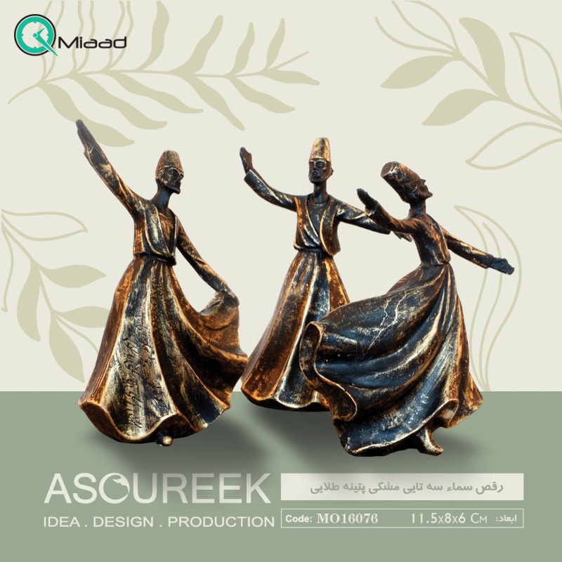 مجسمه رقص سما 3 تایی کد MO16076 از سری محصولاتی تزیینی و مجسمه میعاد تایم می باشد که زیبایی دکور شما را چند برابر می کند. سماع، شکلی از رقص صوفیانه است که، مستلزم چرخاندن بدن در برای نیات معنوی است. سما با تاریخچه غنی، هم طرفداران و هم مخالفان را در قلمرو اسلام به دست آورده است. در اصل، سما مظهر حرکت موزون جمعی از شیفتگان است که توسط ملودی های موزون تولید شده توسط دف، نی، تنبور و ابیات شاعرانه ترکیب می شود. البته رقص سماع را می تواند به نوعی از حالت خلسه ترکیب کرد. با این توضیحات به سراغ معرفی مجسمه سه تایی رقص سما خواهیم رفت.