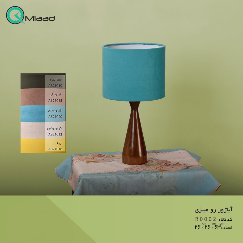 آباژور و چراغ خواب رومیزی مدل R0002، آباژور با پایه چوبی فوق العاده با کیفیت، طرح زیبا شید با رنگ ساده و یک دست رنگ آبی