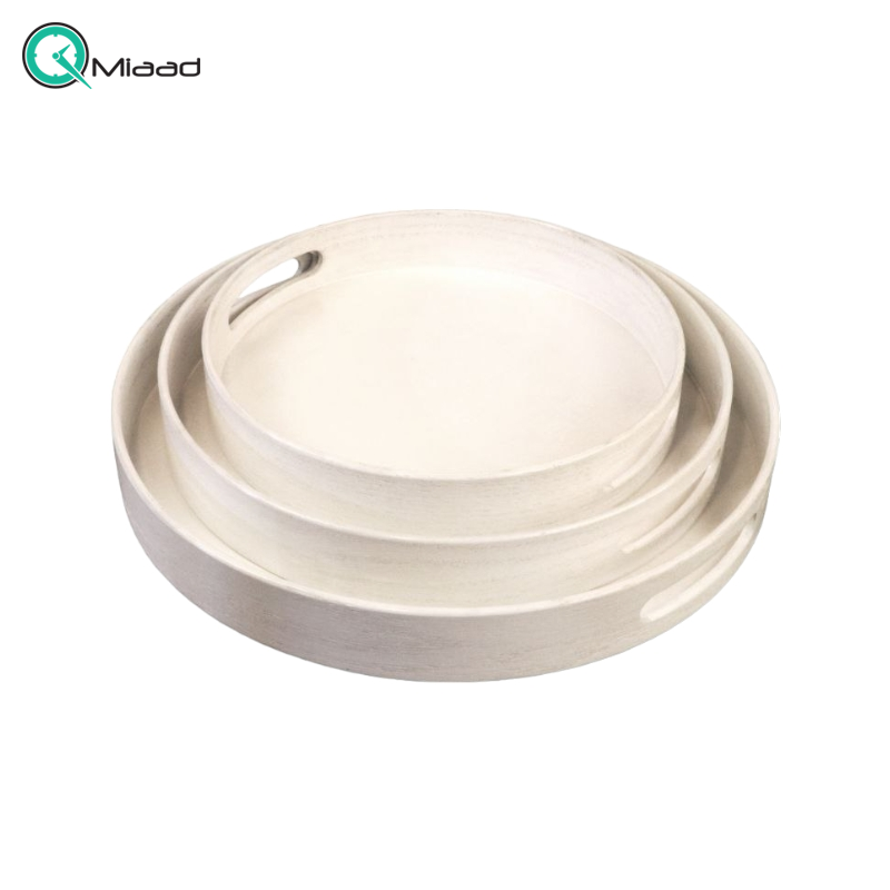 سینی دست ساز از جنس چوب با کیفیت، دارای تنوع سایز و رنگ، رنگ سفید