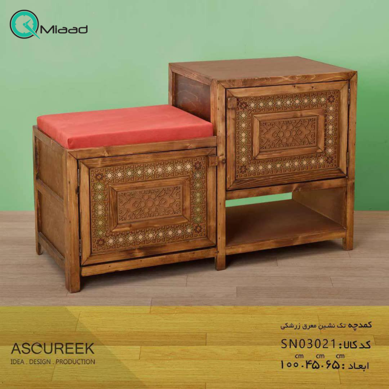 کمدچه تک نشین چوبی معرق زرشکی مدل SN03021 از سری محصولات زیبا و دست ساز برند آسوریک می باشد. فضای ورودی و راهروها همیشه به عنوان اولین نقاط در دسترس و اولین نقاط دکوراسیون دیده می شوند؛ این فضا برای متخصصین دکوراسیون و چیدمان منزل اهمیت داشته و در اکثر اوقات سعی می شود که به بهترین نحو ممکن این تغییر دکور انجام شود.