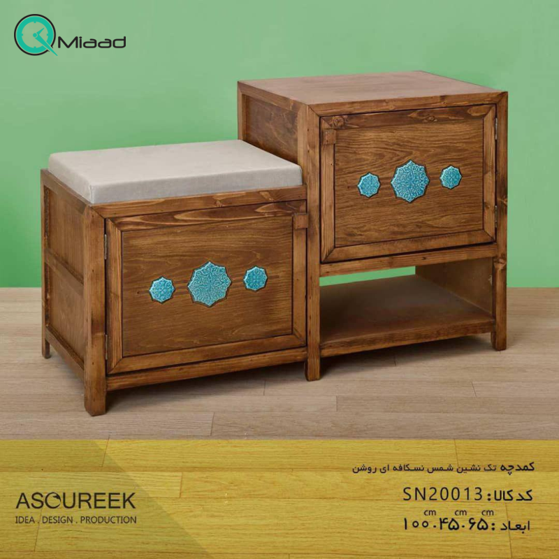 کمدچه تک نشین چوبی شمس مدل SN20013 از سری محصولات زیبا و دست ساز برند آسوریک می باشد. فضای ورودی و راهروها همیشه به عنوان اولین نقاط در دسترس و اولین نقاط دکوراسیون دیده می شوند؛ این فضا برای متخصصین دکوراسیون و چیدمان منزل اهمیت داشته و در اکثر اوقات سعی می شود که به بهترین نحو ممکن این تغییر دکور انجام شود.
