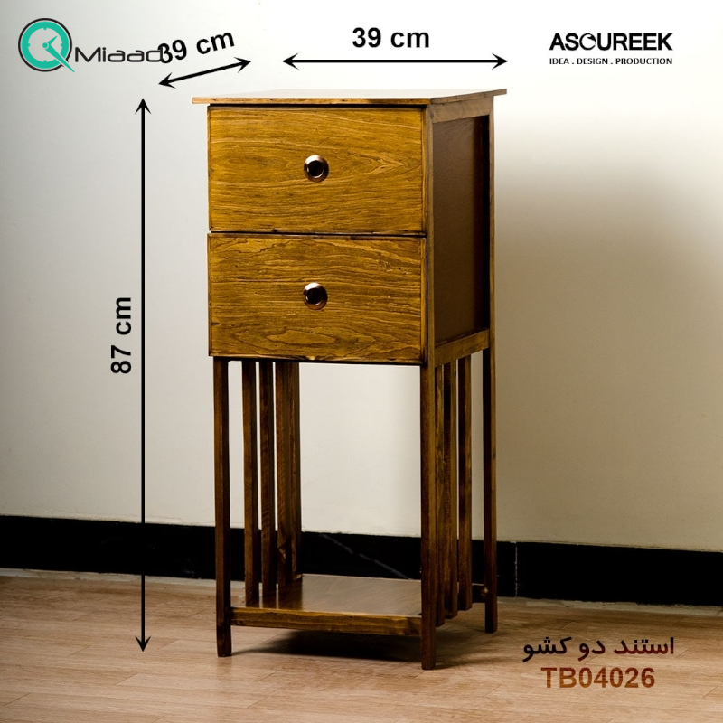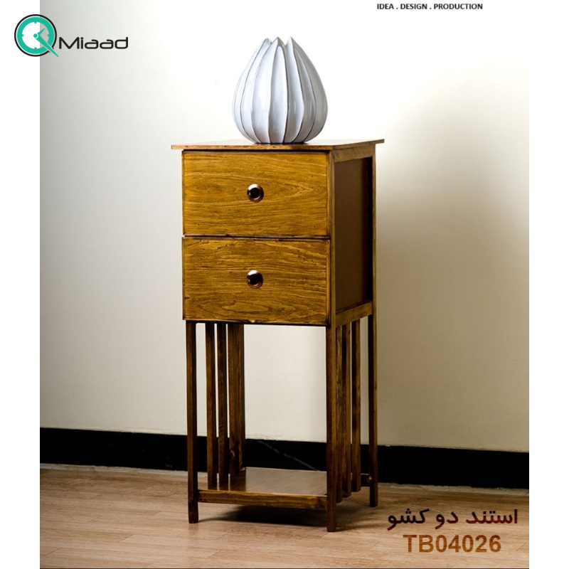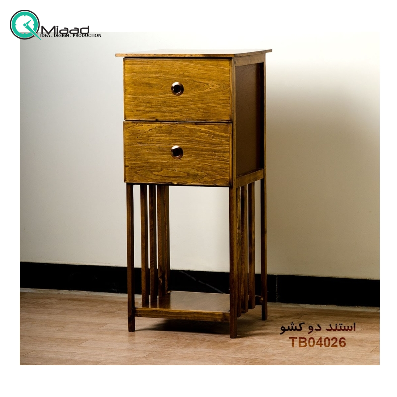 استند دو کشو پایه دار کد TB04026 یک میز زینتی است که می تواند مکانی برای نگهداری وسایل تزیینی در اختیار شما قرار دهد. دراور به شما فضایی برای نگه داری وسایل و البسه و سایر موارد را در اختیار شما قرار می دهد.