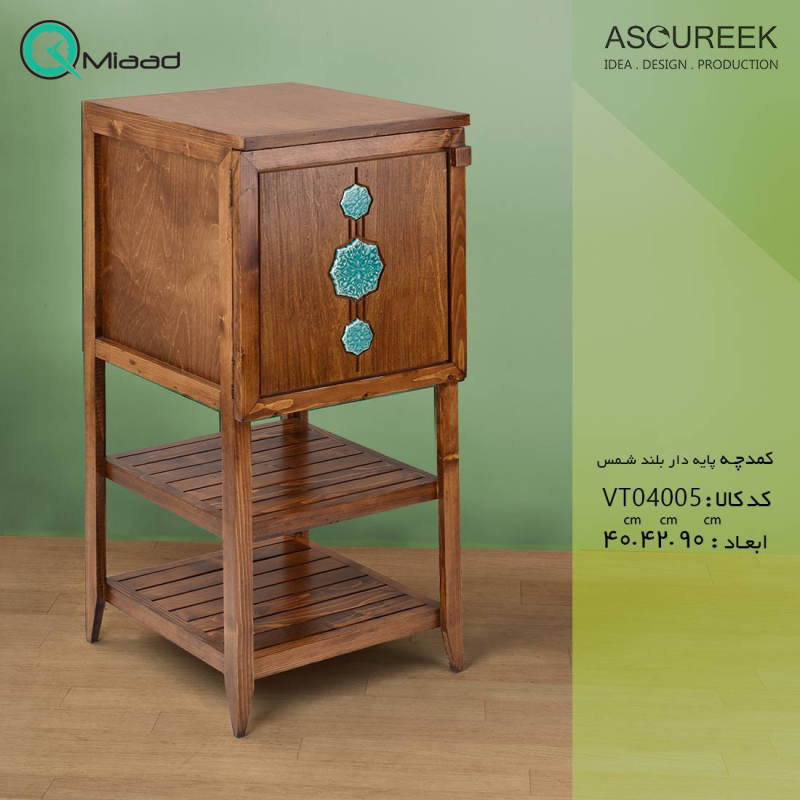 کمدچه پایه دار بلند شمس مدل VT04005 یکی از سری محصولات جذاب میعاد تایم می باشد که در کالکشن اکسسوری چوبی موجود شده است.